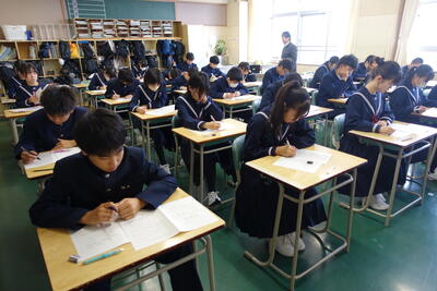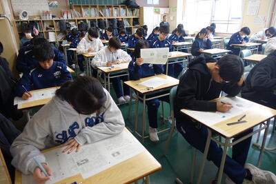 3年生にとっては最後の定期テストとなりました。1年生の頃から小学校とは異なる定期テストを経験してきた3年生。ひとまず1日日程で5教科を一気にテストしていく定期テストはこれにて終了です。今後は各教科で単元テスト等が行われていくことになると思います。