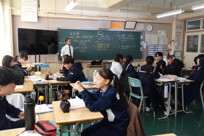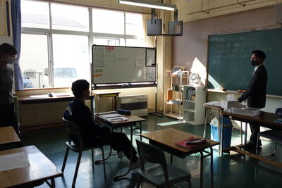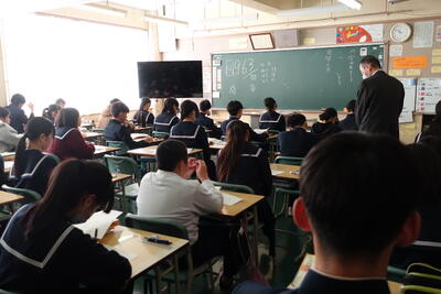 ブログ著者は3時間目に3年B組で「社会科」の授業を、4時間目に3年A組で「道徳」の授業をそれぞれ行いました。経済の導入部分を扱った社会科の授業では、身近なお金や経済に関わることを、生徒との対話を中心に進めました。道徳の授業では、失われた文明という題材でディベートを行いました。激論を交わすグループもあり、おもしろかったです。授業の様子を写真で掲載します。ご覧下さい。