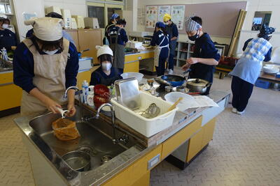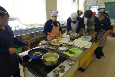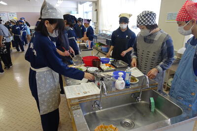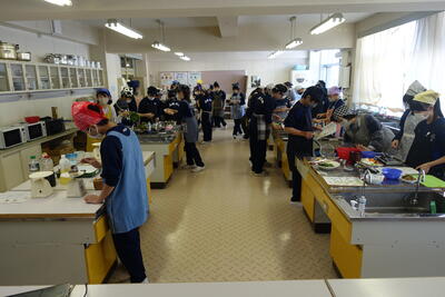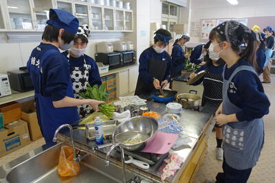 今回は家庭科で調理実習が行われているということで、1年A組の調理実習の様子を見てきました。