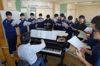 冬休み前最後の授業と言うことで、早くも来年3月の卒業式合唱の練習に取り組んでいました。