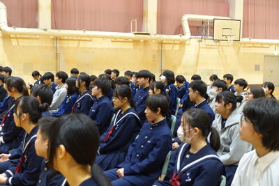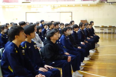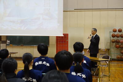 入試の仕組みや中学校で身に付けてほしいことなどをお話していただきました。