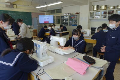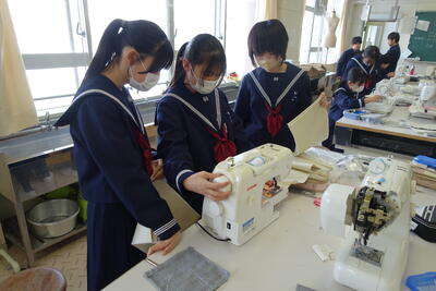 1年家庭科の様子 投稿: ICT 1 (15:30) 冬休みが明けてから、1年生の家庭科ではサコッシュ(薄いショルダーバッグ)の制作のため、 ミシンを使用した学習を行っています。 ミシンに糸をかけるなど複雑な作業が多いのですが、先生の説明を聞いて、 一生懸命取り組んでいました。 写真は1年B組の授業中と昼休みの補修の様子です。 Tweet -