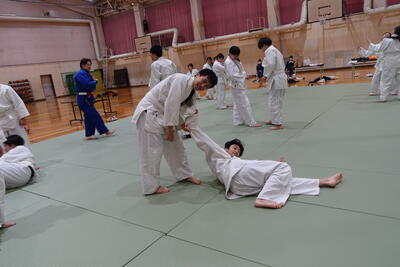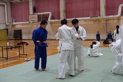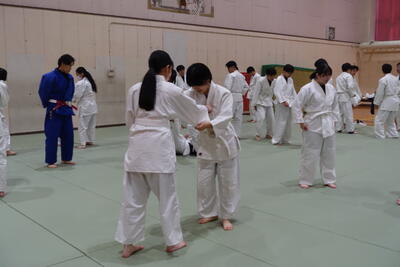 2年生柔道の授業の様子 投稿: ICT 1 (16:00) 保健体育の授業では「武道」を履修することになっており、 本校では「柔道」を実施しています。 体育の黒田先生と柔道の講師として葉名尻先生による複数体制で、 安全に配慮しながら、授業を行っています。 生徒たちは、受け身や投げ技の基本について、説明を聞き、 互いに声を掛け合いながら練習に取り組んでいます。 写真は2年A組の授業の様子です。お互いに協力しながら、意欲的に活動していました。 Tweet -