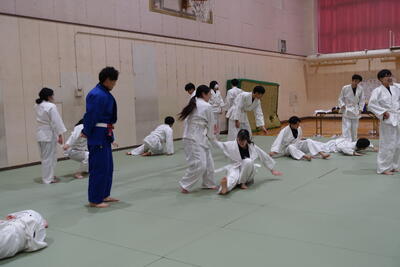 2年生柔道の授業の様子 ブログ 16:00 パブリック ICT 1 保健体育の授業では「武道」を履修することになっており、 本校では「柔道」を実施しています。 体育の黒田先生と柔道の講師として葉名尻先生による複数体制で、 安全に配慮しながら、授業を行っています。 生徒たちは、受け身や投げ技の基本について、説明を聞き、 互いに声を掛け合いながら練習に取り組んでいます。 写真は2年A組の授業の様子です。お互いに協力しながら、意欲的に活動していました。