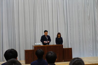 3年生同窓会入会式 ブログ 14:23 パブリック ICT 1 本日、同窓会入会式が行われました。 第10回卒業生の岩舘 健洋 様、齊藤 有希 様に同窓会歓迎のことばをいただきました。 同級生のお二人が、時を隔てても友達でいられ、つながりをもちつづけられること、 後輩である3年生にこれからの人生の中で大切にしてほしいことなどをお話いただきました。 これからも、自分の卒業した学校に誇りをもてる人であってほしいと思います。
