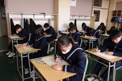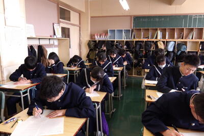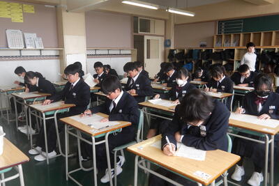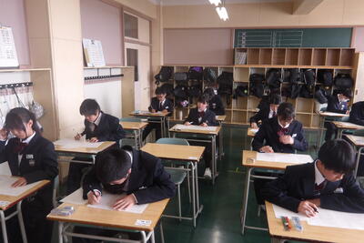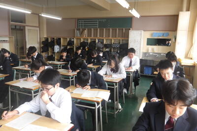 実力テスト 投稿: ICT 1 (13:13) 本日、実力テストが行われました。 1年生にとっては、1時間目から5時間目まで1日いっぱいテストを受けるので 大変だったと思います。よくがんばっていました。 実力テストは、今の自分の力がどのくらいあるのかを確認することができるテストです。 返却されたら、どこの力が今はまだ足りないのかを確かめて、次の学習につなげてください。 0 -