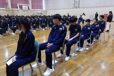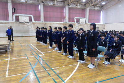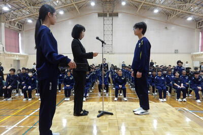 認証式 投稿: ICT 1 (15:07) 本日6時間目に認証式が行い、各専門委員が認証されました。 委員一人一人の呼名に返事をし、代表として認証状を受け取る表情からは、 これから自分の活動に向けた責任感と意欲が感じられました。 誰もが安心して過ごせる学校は、生徒会総務や専門委員だけでなく、みんなでつくっていくものです。 互いに支えながら、それぞれができることを考えて学校生活を送ってくれることを期待しています。 0 -